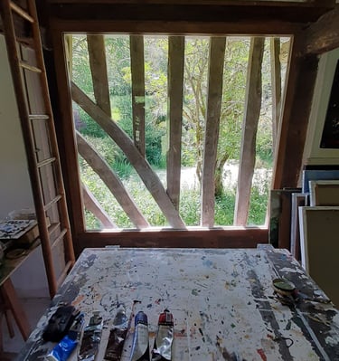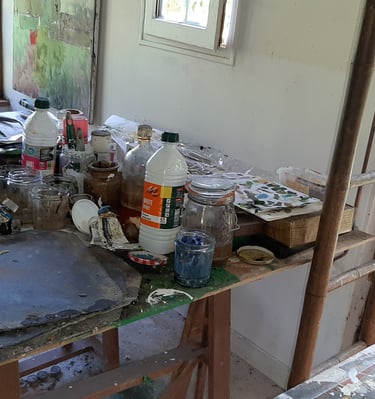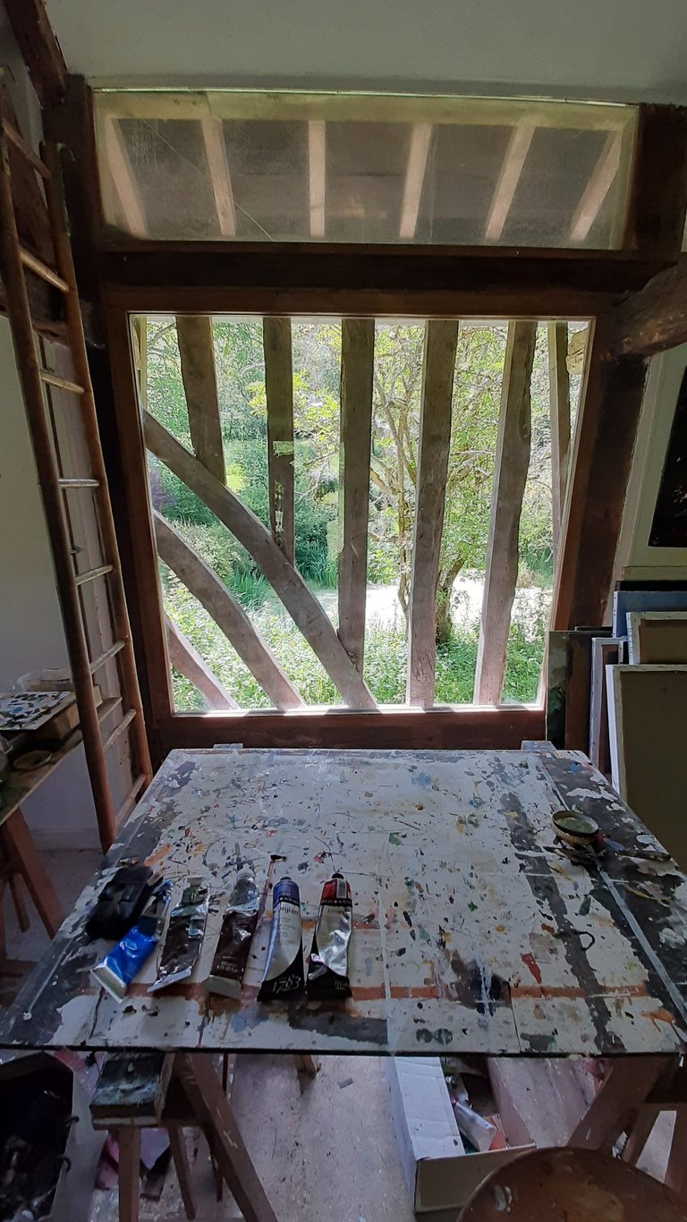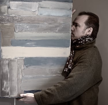Son travail pictural se situe dans la tradition de l'Ecole de Paris avec une admiration pour ces peintres de l"abstraction chaude" ayant mêlé une véritable démarche d'abstraction et un vrai matériau pictural, la peinture à l'huile : Nicolas de Stael, Veira da Silva, Esteve, Soulages....